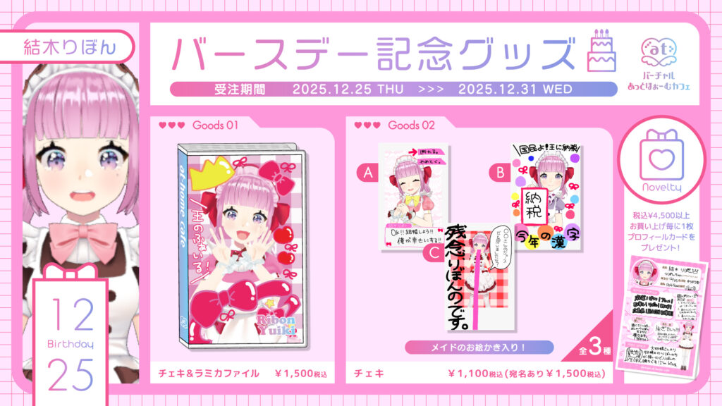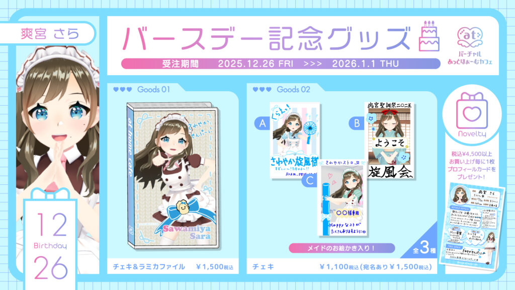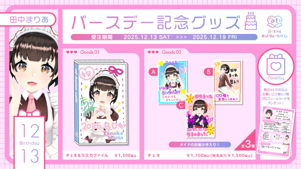 2025年12月にバースデー記念グッズの販売を行うメイドのご紹介です♡